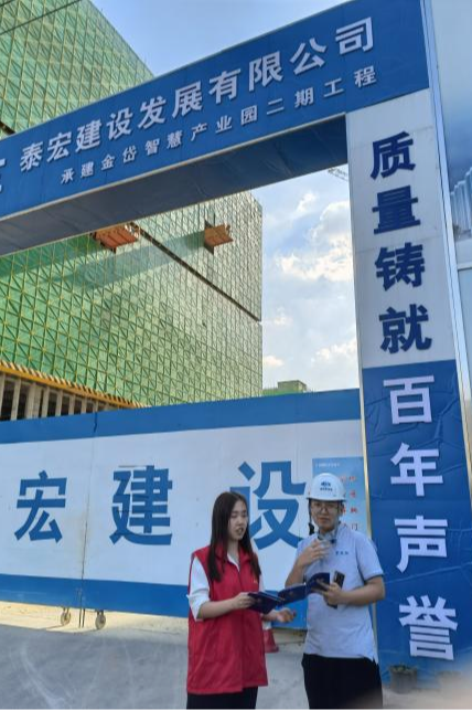 隨后,普法志愿者又走進金岱智慧產業園二期項目現場,對項目建設單位開展調研交流,普法人員現場發放公平競爭宣傳手冊,并結合近年來全國反壟斷典型案例,從反壟斷的職能劃分、反壟斷的歷史變革以及三種壟斷行為特征出發,進行系統的宣貫講解。交流發現,企業均能通過制度建設或培訓學習等方式,在企業內部形成良好的反壟斷氛圍,提升合規競爭意識。