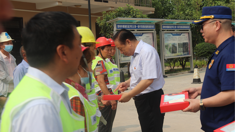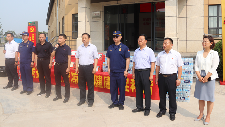 進(jìn)入夏季以來,持續(xù)出現(xiàn)的高溫天氣,給奮戰(zhàn)在建設(shè)一線的施工人員帶來嚴(yán)峻考驗(yàn),廣大職工不畏酷暑,堅(jiān)守崗位,辛勤付出。為做好廣大職工的防暑降溫工作,切實(shí)保護(hù)職工身體健康,6月11日,鄭州市總工會(huì)、鄭州市消防救援支隊(duì)到鄭州地產(chǎn)集團(tuán)西流湖公司中原新區(qū)土地一級(jí)開發(fā)項(xiàng)目指揮部開展主題為“送清涼、送安全、送健康、促和諧”的夏季送清涼活動(dòng)。鄭州市一級(jí)巡視員、市總工會(huì)黨組書記、主席趙新中,市消防救援支隊(duì)副支隊(duì)長(zhǎng)、滅火救援指揮部部長(zhǎng)李隆,市總工會(huì)副主席宋少丹,鄭州地產(chǎn)集團(tuán)有限公司監(jiān)事會(huì)主席、工會(huì)主席李靜波及西流湖公司黨支部書記、董事長(zhǎng)、總經(jīng)理吉獻(xiàn)亮等領(lǐng)導(dǎo)出席活動(dòng)。活動(dòng)由西流湖公司副總經(jīng)理昌磊主持。