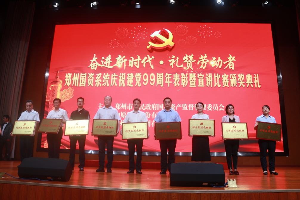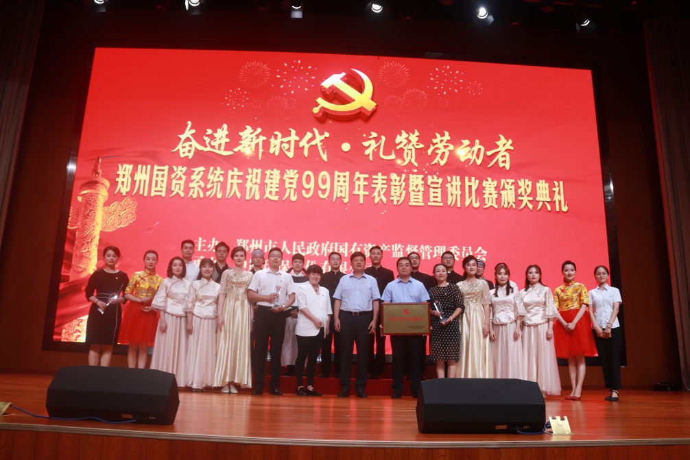 為慶祝中國共產黨成立99周年,重溫黨的光輝歷程,傳承黨的優良傳統,6月30日下午,鄭州市國資委舉行“奮進新時代·禮贊勞動者”——鄭州國資系統慶祝建黨99周年表彰暨宣講比賽頒獎典禮,集團黨委書記、董事長萬永生,監事會主席李靜波,以及集團優秀基層黨組織、優秀共產黨員、優秀基層代表、獲獎節目代表等共計20余人參加此次頒獎典禮。