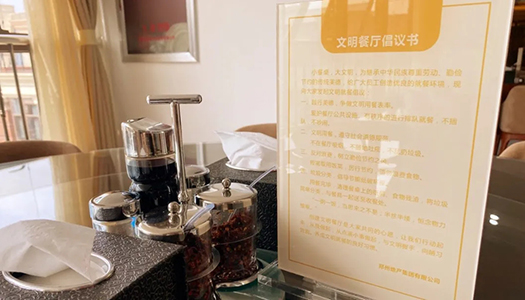 全集團要積極傳承中華民族優秀飲食文化和尊重勞動、珍惜糧食、勤儉節約的傳統美德,大力弘揚勤儉節約、艱苦奮斗的崇高精神,積極倡導“文明就餐,杜絕浪費”的用餐文化,營造“節約光榮、浪費可恥”的良好氛圍。