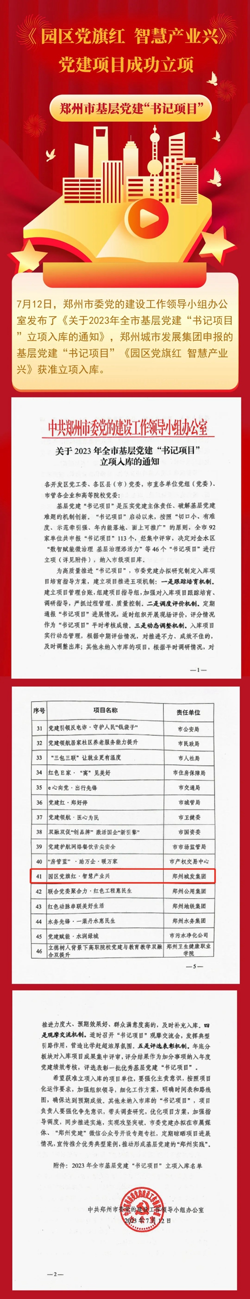 該項(xiàng)“書記項(xiàng)目”主要致力于推動(dòng)黨建與產(chǎn)業(yè)園建設(shè)、招商和運(yùn)營(yíng)的深度融合,充分發(fā)揮黨建引領(lǐng)作用,切實(shí)為園區(qū)企業(yè)提供“一站式”的黨建服務(wù)、政務(wù)服務(wù)、創(chuàng)新創(chuàng)業(yè)服務(wù)、社會(huì)生活服務(wù)等,為企業(yè)發(fā)展增效賦能,推動(dòng)產(chǎn)業(yè)園黨組織和黨的工作覆蓋更加有效、體制機(jī)制更加科學(xué)、黨組織建設(shè)更加規(guī)范、黨員教育管理更加精準(zhǔn)、基層黨組織保障更加有力,園區(qū)黨建品牌更加響亮,示范作用更加凸顯,形成具有國(guó)企特色、符合鄭州實(shí)際的產(chǎn)業(yè)園黨建工作舉措,以高質(zhì)量黨建引領(lǐng)和賦能園區(qū)高質(zhì)量發(fā)展,致力打造在全省、全市具有標(biāo)桿作用和示范效應(yīng)的“黨建+產(chǎn)業(yè)園”新名片。