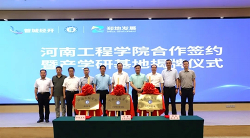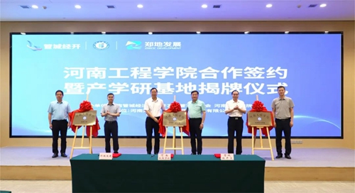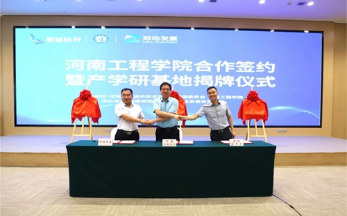 會上,河南工程學院、管城經濟技術開發區管理委員會、河南鄭地產城融合建設發展有限公司共同簽署產學研合作協議,并現場為河南工程學院校外實習基地、產學研合作基地、就業基地揭牌。