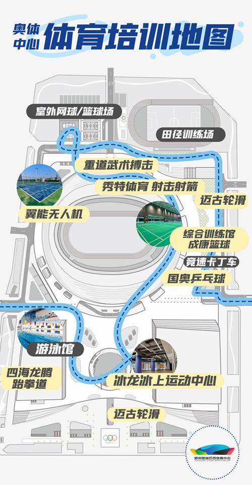 鄭州奧體中心不斷吸納引進時尚體育品類,搭建科學完善的青少年體育培訓平臺,8月8日當天,奧體中心特推出滑冰、籃球、乒乓球、射擊、無人機等豐富的免費試聽課,歡迎報名體驗。