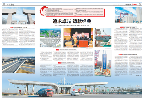 當日上午,從在北京召開的“2022—2023年度國家優質工程獎總結表彰大會”上傳來喜訊,京港澳高速、省道102與四港聯動大道組合式互通立交工程榮獲“國家優質工程獎”。這是鄭州市國省干線公路項目首次獲得該獎項,標志著我市公路建設高質量發展取得新的突破。