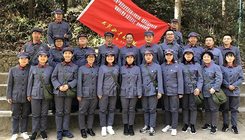 14日,學(xué)員們走上“志仁小道”,在這條曲折山路上,新縣首位共產(chǎn)黨員——王志仁奔走宣傳革命思想、努力開(kāi)展革命活動(dòng)。在爬山的途中路遇陡坡,旁邊的隊(duì)友立刻伸出援助之手;渴了,沒(méi)事我的水給你先喝……身著紅軍服,腳走崎嶇道,學(xué)員們仿佛置身那段熱血?dú)v史中,用自身行動(dòng)弘揚(yáng)革命先輩不畏艱險(xiǎn)、頑強(qiáng)斗爭(zhēng)的光榮傳統(tǒng)。 下午在新縣鄂豫皖蘇區(qū)首府烈士陵園,全體學(xué)員懷著肅穆的心情向革命先烈們敬獻(xiàn)花籃并真誠(chéng)致禮,在革命烈士事跡陳列廳重溫入黨宣誓。陳列的一個(gè)個(gè)實(shí)物、一幅幅畫(huà)卷,將蘇區(qū)可歌可泣的英雄事跡清晰地展現(xiàn)在大家面前,舉起右手,莊嚴(yán)宣誓,英雄們的感人事跡激勵(lì)著我們,在來(lái)之不易的和平年代,用實(shí)際行動(dòng)來(lái)弘揚(yáng)革命先輩用鮮血和生命凝結(jié)的紅色文化。