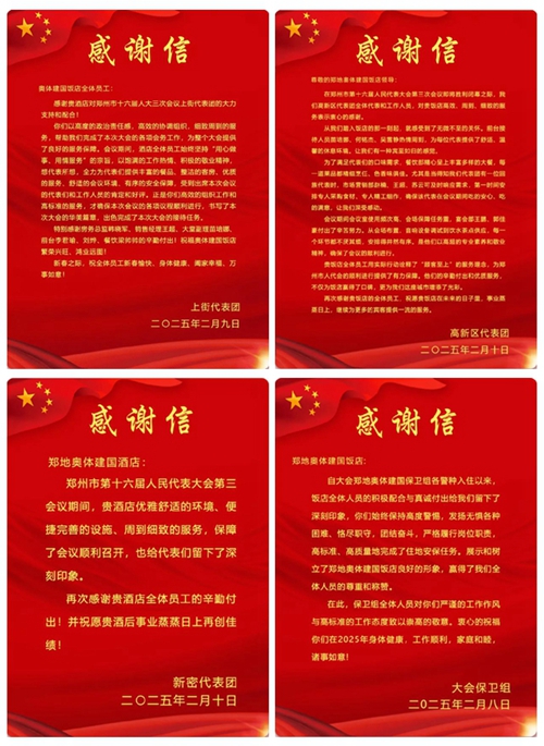 自2021年正式運(yùn)營以來,通過持續(xù)踐行“顧客至上”理念,不斷提升接待水準(zhǔn),打造“奧體服務(wù)”金字招牌,奧體建國酒店已憑借高品質(zhì)服務(wù)成為省、市、區(qū)重大政務(wù)接待活動的首選,并通過2021年中國共產(chǎn)黨第十二次代表大會、2025年鄭州市第十六屆人民代表大會第三次會議等多次重大會議圓滿保障經(jīng)驗(yàn),成為展示奧體形象、彰顯奧體服務(wù)品質(zhì)的一張靚麗名片。