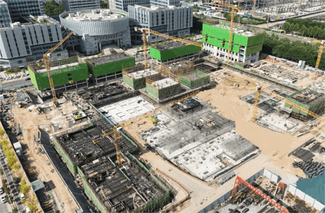 五月的城發(fā)·高新生物經(jīng)濟(jì)產(chǎn)業(yè)園,塔吊繁忙運(yùn)轉(zhuǎn)、機(jī)械設(shè)備轟鳴不斷,工人們有條不紊地進(jìn)行施工作業(yè),項(xiàng)目建設(shè)現(xiàn)場到處一派熱火朝天的繁忙景象。其中,項(xiàng)目一期的主樓工程基本完成,室外配套管網(wǎng)、景觀正在施工中;項(xiàng)目三期的土方、樁基已完成,正在交叉推進(jìn)正負(fù)零和主體施工,部分樓棟已施工至六層。
