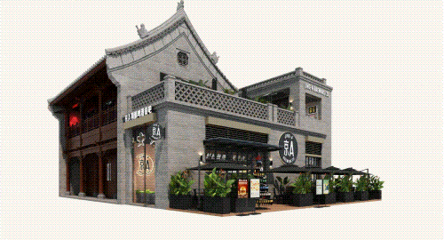 以COMMUNE幻師的門店設計為例——從效果圖可以看出,建筑外部以青灰色磚墻復刻商代建筑肌理,檐角神獸造型融入現代燈光設計,整體風格充滿著古樸與時尚。店內則以暖色調營造松弛感,酒墻擺滿了來自全球的精釀。每當味蕾觸碰到精釀的麥香,窗外同時飄入來自3600年前夯土的氣息——在這里,顧客喝的不是單純的酒,而是歷史與現代的奇妙敘事。