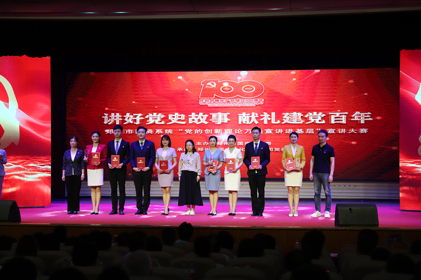 為慶祝中國共產黨成立100周年, 扎實開展黨史學習教育, 5月26日上午,鄭州市國資系統“講好黨史故事·獻禮建黨百年”——“黨的創新理論萬場宣講進基層”宣講大賽在市總工會一樓職工大禮堂圓滿落下帷幕。來自市國資系統14家單位選送的15個宣講節目進入大賽決賽,鄭州地產集團選送的西流湖公司黨支部宣講節目《百年交響》榮獲三等獎。