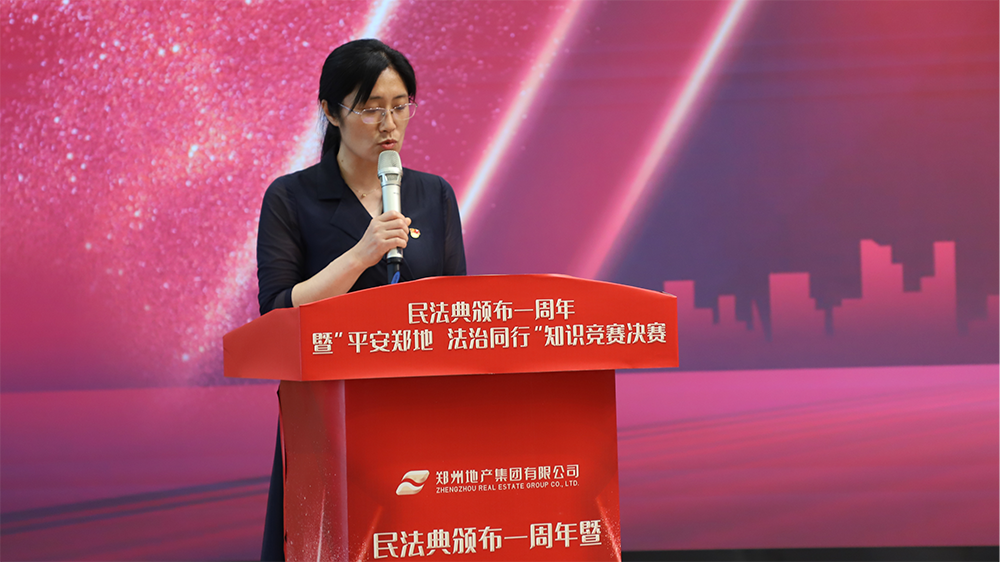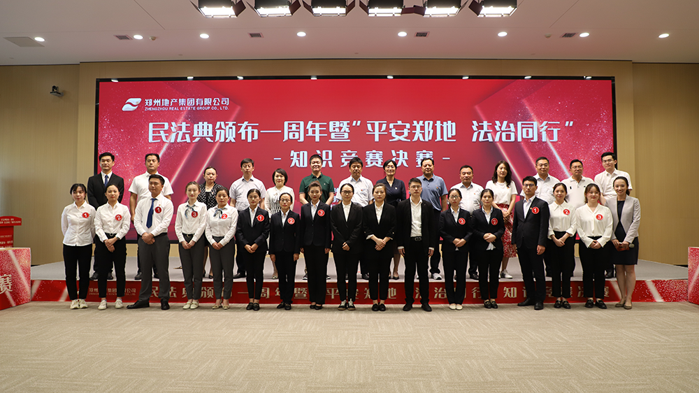 為深入貫徹落實習近平總書記關于民法典學習宣傳的重要講話精神及市國資委2021年度普法依法治理工作要點相關要求,引導全體職工深入學習民法典及相關法律知識,提升職工干部學法懂法守法用法的能力,5月28日,在民法典頒布一周年之際,鄭州地產集團主辦、西流湖公司和鄭地發展公司承辦的“平安鄭地 法治同行”知識競賽總決賽在金岱科創城商務服務中心舉辦,在市屬國企系統掀起學法普法的熱潮。鄭州市國資委黨委委員、副主任孟慶平、信訪處處長夏建新、法規處副處長張珂應邀出席本次活動。