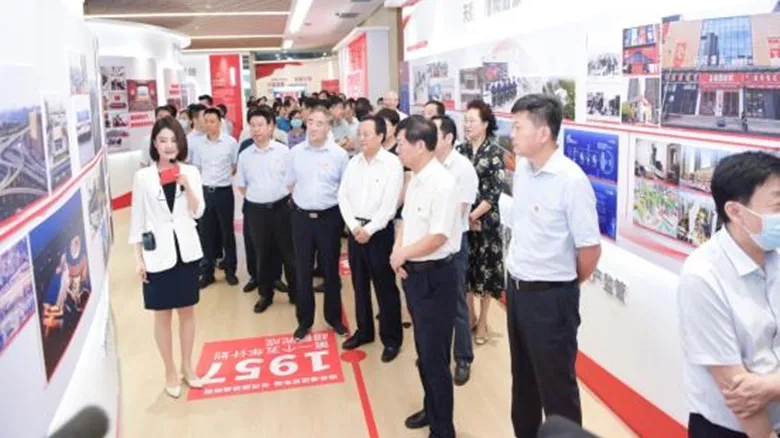 市委黨史學習教育領導小組辦公室常務副主任、二級巡視員徐西平,市委黨史學習教育第三巡回指導組組長、二級巡視員張福清,市國資委黨委書記、主任李秀山等領導出席開幕式。地產集團黨委書記、董事長萬永生致歡迎詞。李秀山講話并宣布成就展開幕。委領導班子成員,各市管企業主要負責同志及分管領導,駐鄭央企分管領導等共計200余人參加開幕式并觀展。開幕式由鄭州市國資委黨委副書記黃名坤主持。