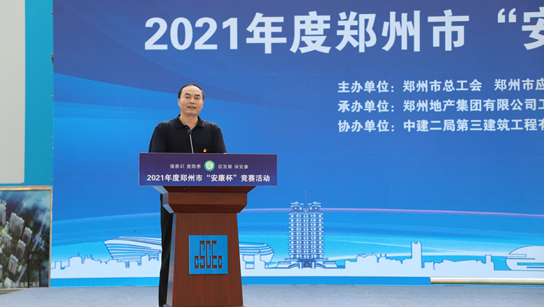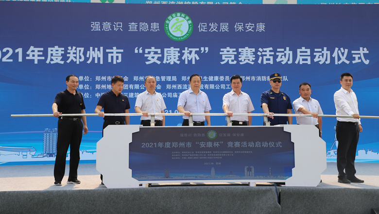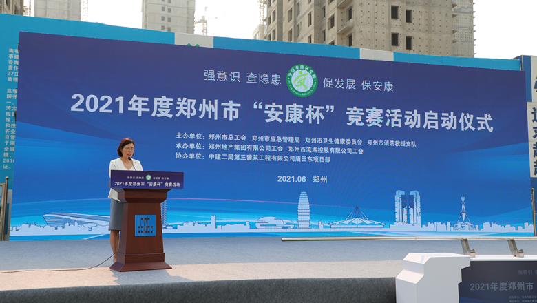 為深入貫徹落實習近平總書記有關加強安全生產工作的部署和要求,進一步強化各級各部門、各企業主體的安全責任意識,確保我市安全生產形勢持續好轉,職工安全健康不斷鞏固。6月11日上午,由鄭州市總工會、鄭州市應急管理局、鄭州市衛生健康委員會及鄭州市消防救援支隊主辦,鄭州地產集團工會、鄭州西流湖控股有限公司工會承辦的鄭州市2021年“安康杯”競賽啟動儀式在中原新區廟王東安置區項目成功舉行。鄭州市相關組織部門、市總工會成員單位、地產集團、西流湖公司、各參建單位共200余人參加啟動儀式。鄭州市一級巡視員,市總工會黨組書記、主席趙新中、鄭州市衛生健康委員會黨組成員、二級調研員楊德林、鄭州市應急管理局三級調研員安春茂、鄭州市消防救援支隊副支隊長、滅火救援指揮部部長李隆、鄭州市總工會副主席宋少丹、鄭州地產集團有限公司監事會主席、工會主席李靜波、鄭州地產集團西流湖公司黨支部書記、董事長、總經理 吉獻亮,中建二局第三建筑工程有限公司西北分公司黨委副書記、執行總經理趙海軍出席儀式。啟動儀式由市總工會勞動和經濟部部長宋慧主持。