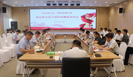 6月19日下午,西流湖公司、鄭地發展公司召開新任中層干部任前廉政談話會。公司領導班子成員、中層正副職人員及新任職中層干部人員共計二十余人參加,會議由公司黨支部書記、董事長、總經理吉獻亮主持。會議要求新任中層干部要認清定位、做好表率,要對下負責、嚴格管理,以強烈的事業心和主人翁姿態,主動扛大梁、挑重擔、負重責、做貢獻;要敢于擔當作為,勇于攻堅克難,要以踏石留印、抓鐵有痕的勁頭理清思路、突出重點、轉變作風、創新機制,以主動擔當、奮發有為的姿態扛起助力城市建設發展的大旗,為鄭州國家中心城市建設增光添彩。