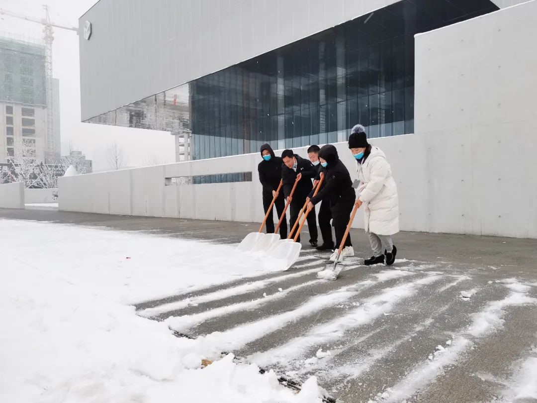 全力以赴,分秒必爭。4日下午突如其來的降雪,給第二天的檢測工作帶來了極大困難。面對艱巨的任務,為切實做好全員核酸檢測準備工作,保障參檢群眾生命財產安全。鄭地發展公司作為國企,危急關頭彰顯國企擔當,第一時間作出動員號召,由黨員同志帶頭,迅速組建了一支30余人的志愿服務隊,連夜開始了場地清理布置工作,調配防疫物資、準備消毒液、架設引導牌、拉設警戒線、張貼掃碼紙、擺放檢測臺,對商務服務中心進行全面消殺,同時組織新加入的志愿者開展模擬演練,幫助大家快速熟悉服務工作,保證各個環節有條不紊。5日清晨,志愿者們早早來到商務服務中心現場清理積雪,僅僅半個小時,園區便露出了干凈整潔的路面,為迎接檢測做好了充分準備。