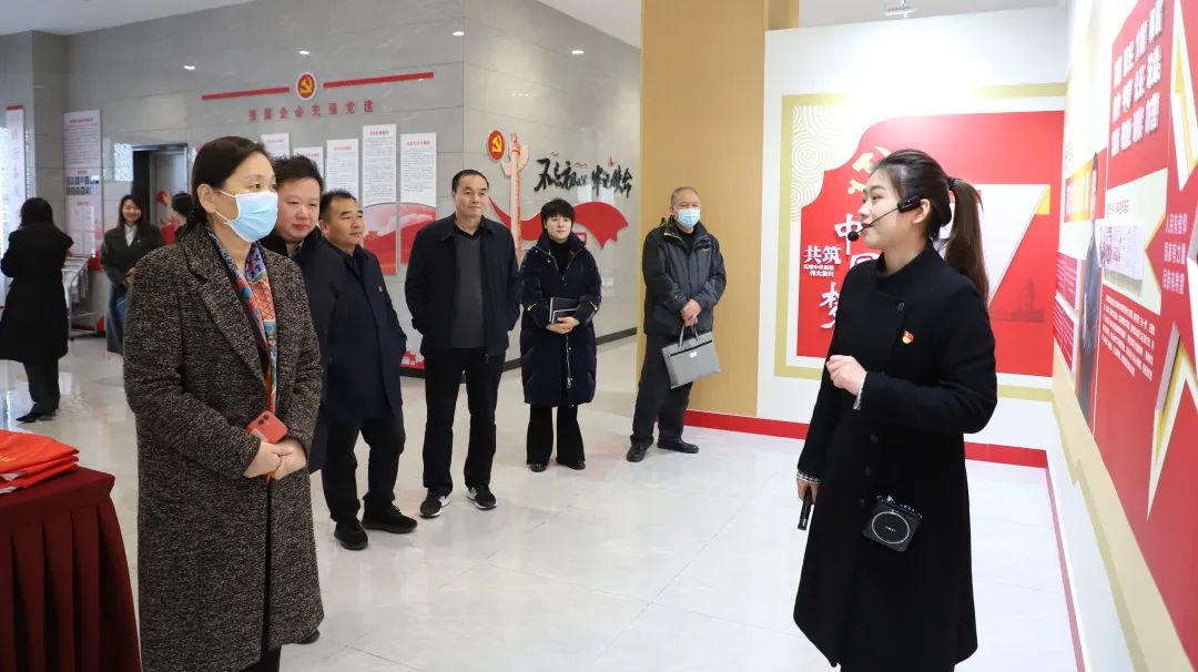 2月25日上午,市國資委國有企業監事會主席夏艷琴、黨建處副處長康為民、黨建處人員劉曉慧一行到河南鄭地產城融合建設發展有限公司鄭州金岱科創城商務服務中心,驗收金岱“星火聚力”黨建班組基層黨建示范點創建工作。集團監事會主席李靜波,黨群工作部部長李禎,西流湖黨支部書記、公司董事長、總經理吉獻亮,副總經理尹正源等參加調研。