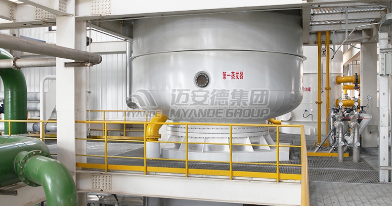 邁安德第一蒸發(fā)器是長管式升膜蒸發(fā)器,該設備利用來自DTDC的二次蒸汽,對混合油進行第一次蒸發(fā),提高混合油濃度。