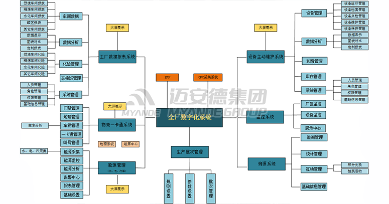 邁安德智能化工廠系統(tǒng)在利用工廠原有的基礎(chǔ)自動化、過程自動化、MES、ERP到?jīng)Q策支持的整體信息化體系架構(gòu)的同時(shí),協(xié)同辦公自動化(OA),結(jié)合4G、5G移動互聯(lián),大數(shù)據(jù)智能算法等先進(jìn)互聯(lián)網(wǎng)技術(shù),從全流程大數(shù)據(jù)質(zhì)量管控、全生命周期數(shù)字化以及供應(yīng)鏈互通互聯(lián)等方面進(jìn)一步優(yōu)化補(bǔ)充,實(shí)現(xiàn)企業(yè)的智能制造。