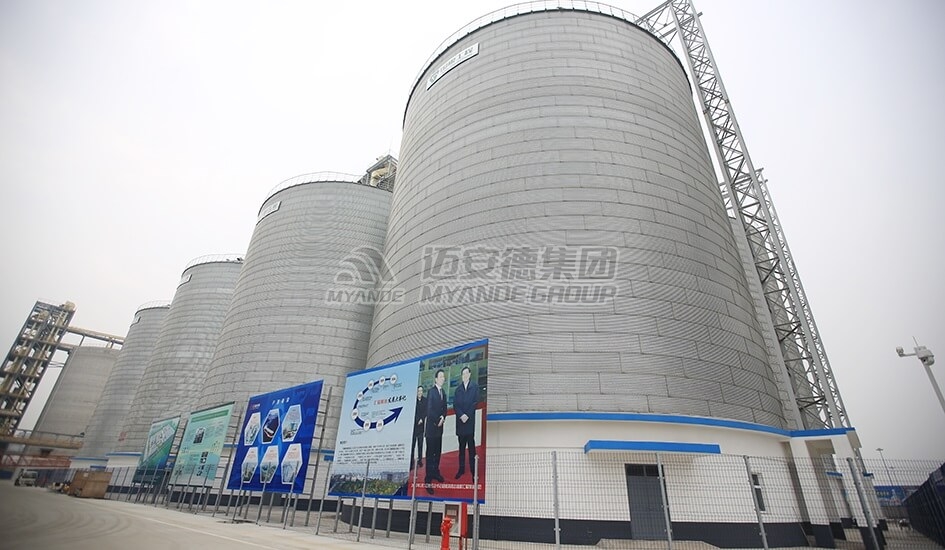 邁安德原糧筒倉捷運系統(tǒng)由投糧系統(tǒng)、清理系統(tǒng)、進倉系統(tǒng)、出倉系統(tǒng)、通風、鼓冷、熏蒸系統(tǒng)、糧情檢測系統(tǒng)、除塵系統(tǒng)等系統(tǒng)組成。卡車將原糧轉運至廠區(qū)并傾倒于投料坑中,原糧通過變頻刮板、提升機均勻地輸送至倉頂,再通過倉頂?shù)妮斔驮O備(刮板輸送機、皮帶輸送機)分配進倉。